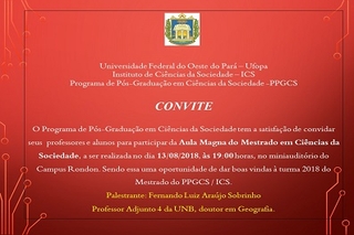 Aula Magna do Mestrado em Ciências da Sociedade será realizada dia 13 de agosto